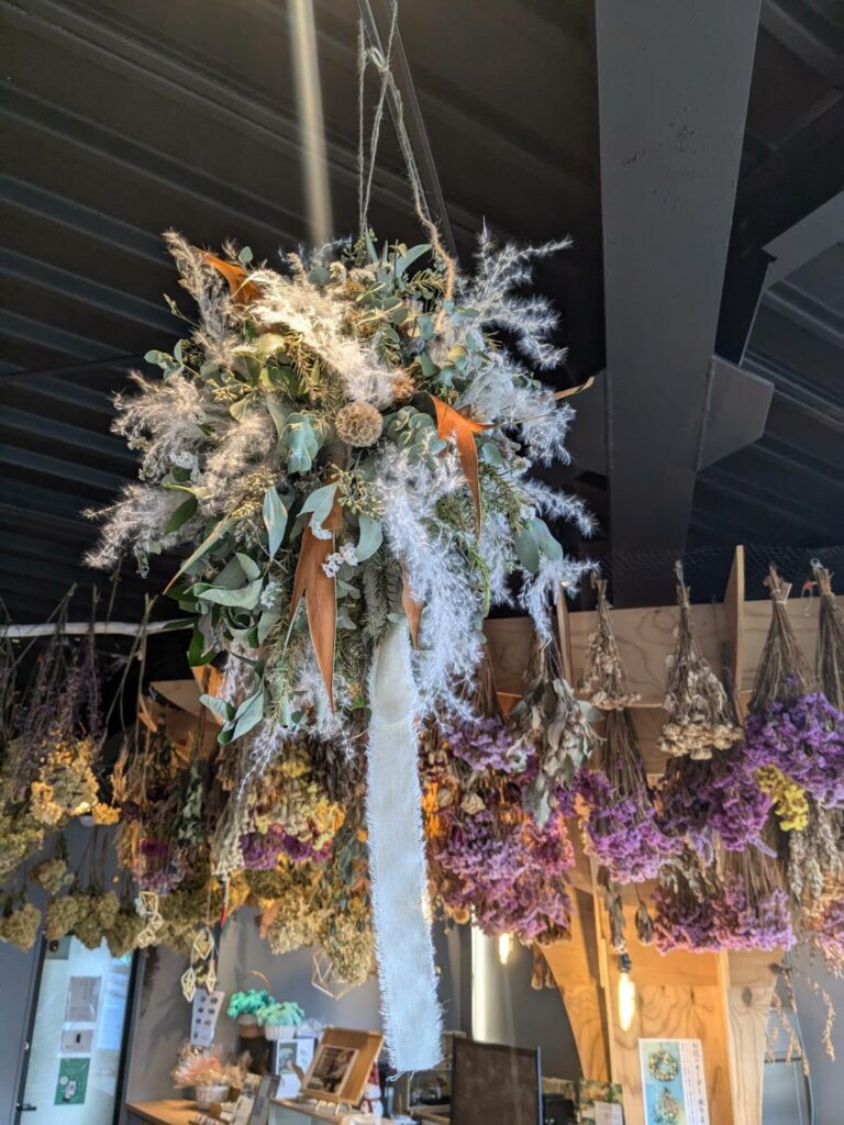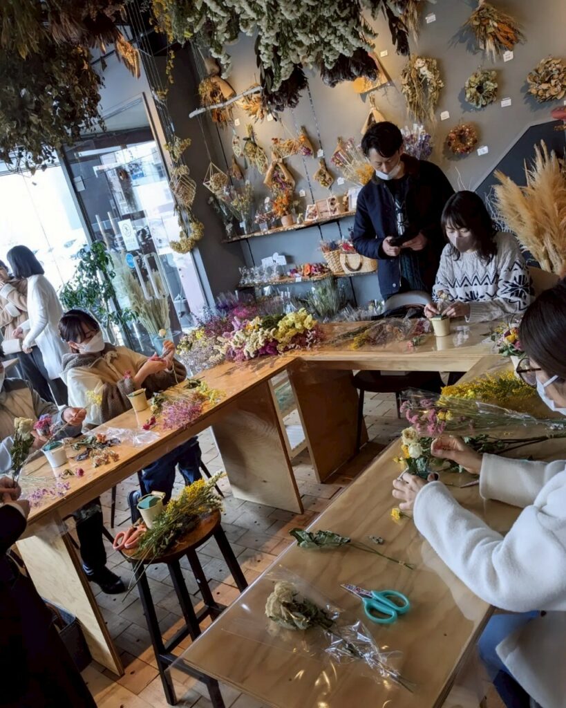 田村フローリストとなりのLOSSISMORE(ドライフラワー&カフェ)で店内いっぱいに広がるドライフラワーに囲まれながら、自分だけの作品づくりを楽しめるワークショップを開催しました。