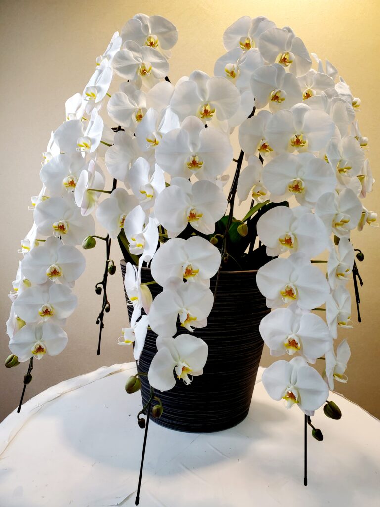 胡蝶蘭の花茎(花の軸)が5本立ち上がった豪華な仕様で、