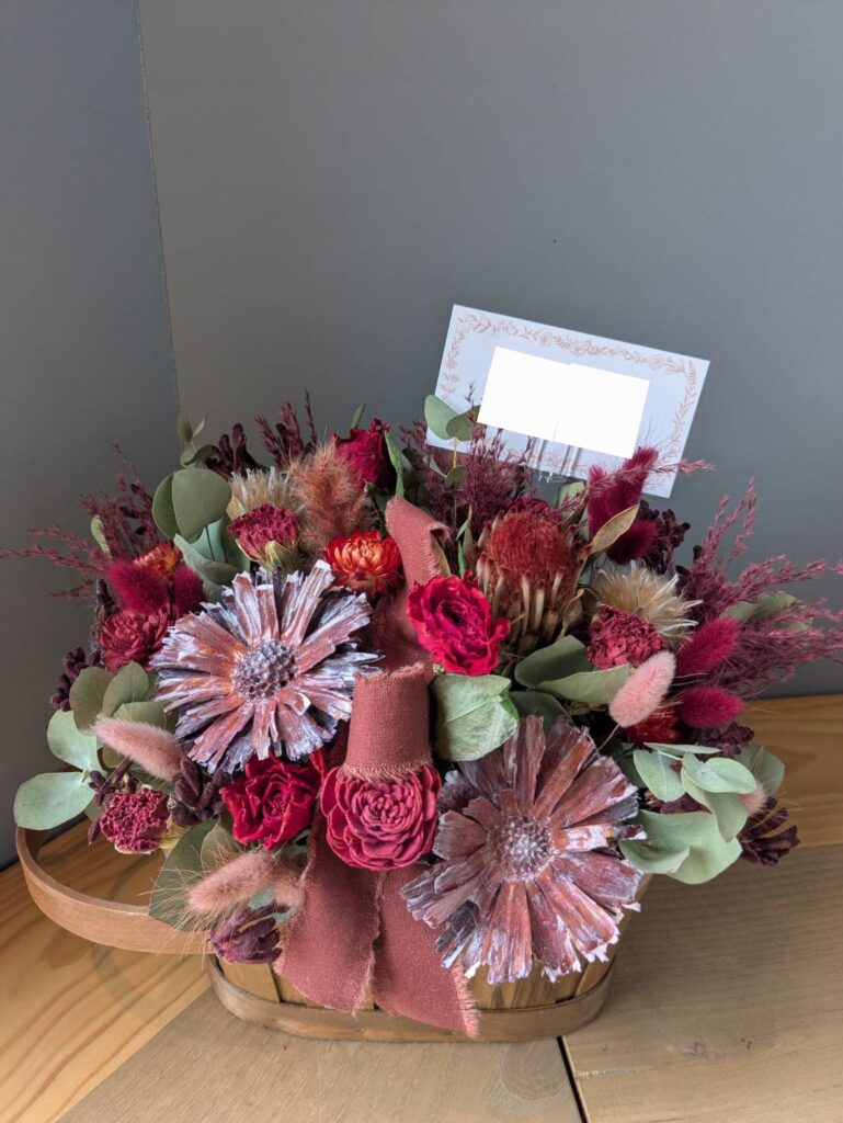 なかでも赤色のドライフラワーは、法人ギフトとして非常に相性が良いカラーです。