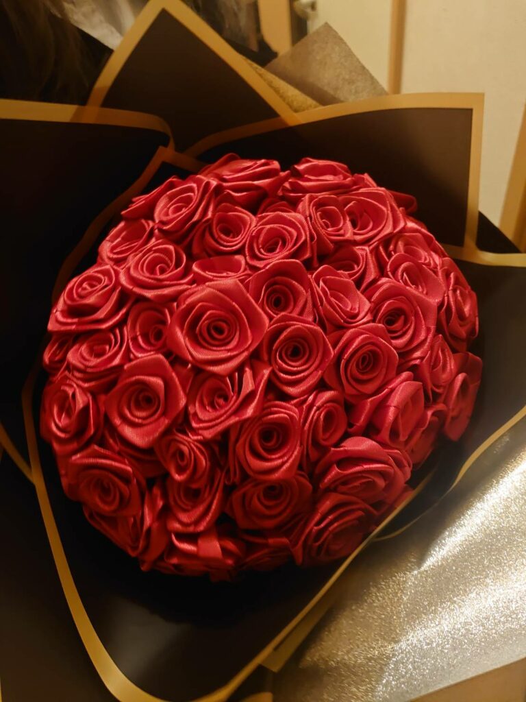 最近ではプリザーブドフラワーやアーティフィシャルフラワーなど、さまざまな“枯れない花”がありますが、その中でも特に注目されているのが、リボンで丁寧に作られたバラの花束です。